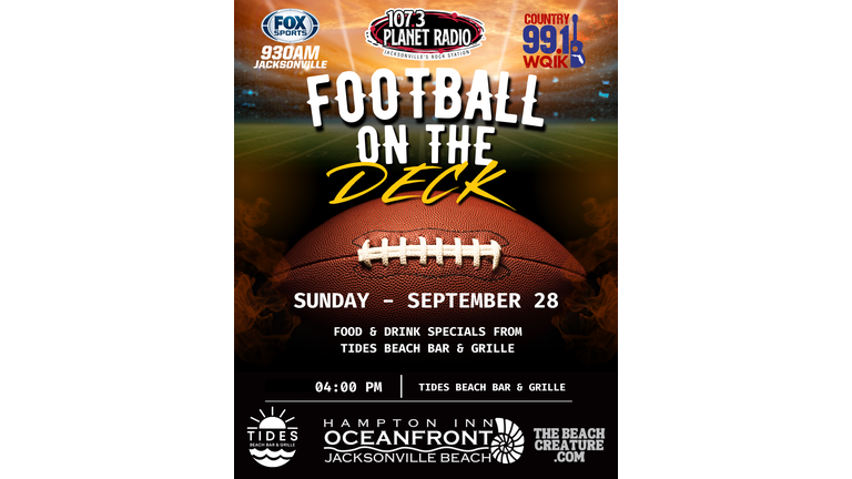 We are back at Tides Beach Bar and Grill for Sunday Football! Join us this Sunday, September 14th starting at 1pm for Football on the Deck! The only place you can enjoy live football on both Saturday and Sunday on the oceanfront in Jax Beach! Plus, games and giveaways during the commercial breaks.