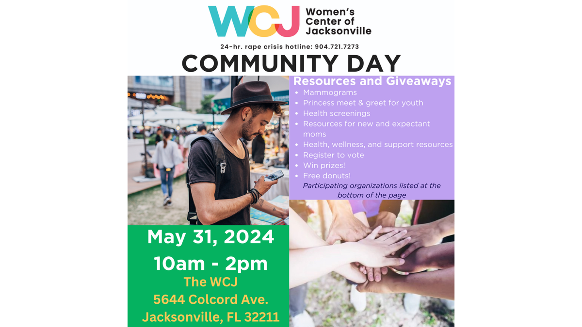 Be a part of the Women's Center of Jacksonville's Community Day on May 31st from 10a-2p. Hosted at the Women's Center of Jacksonville - 5644 Colcord Ave Jacksonville, FL 32211 Learn more about WCJ at thewcj.org