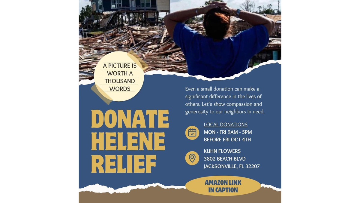 Many areas of Florida have teamed up with the Florida State Florist Association (FSFAI), FSFA International / Florida State Florist Association, to extend a helping hand to those in need. Kuhn Flowers is proud to be part of this community effort, collecting donations for families affected by Hurricane Helene in Perry, Taylor County, and the Big Bend area.