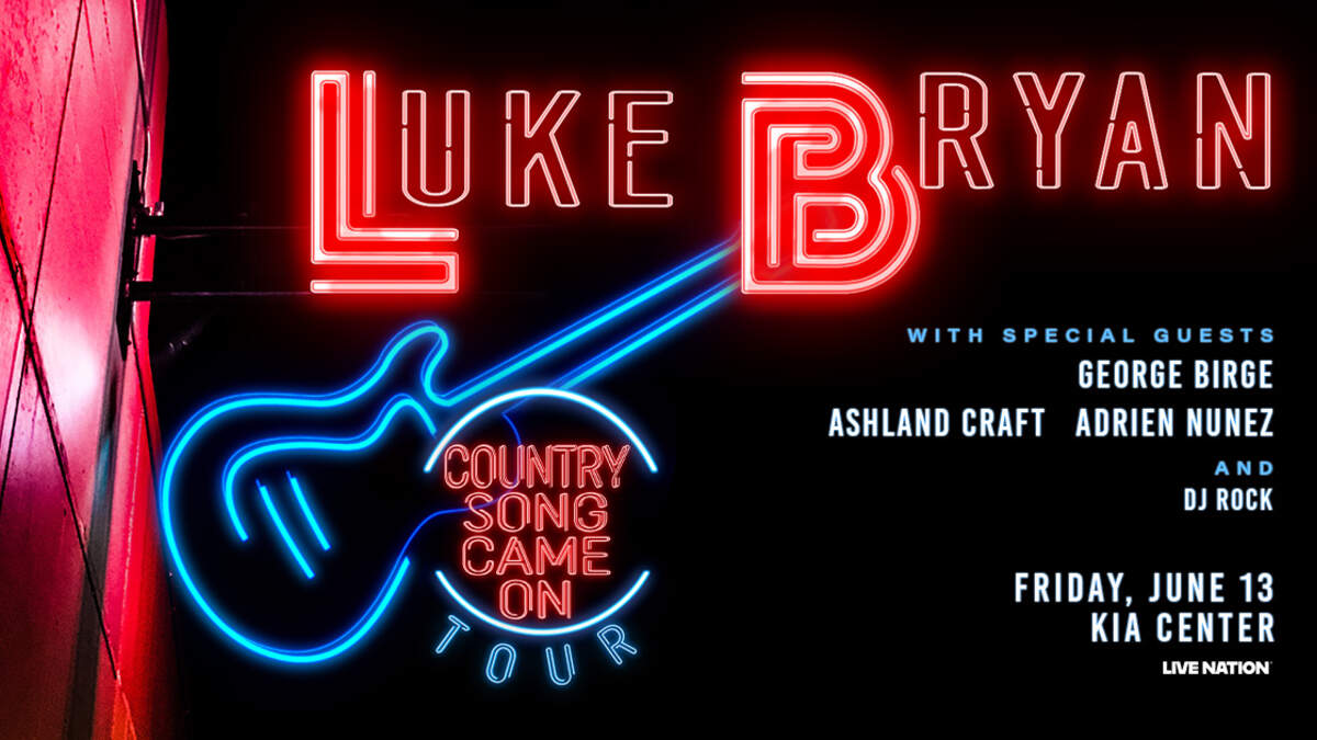 Luke Bryan is bringing his Country Song Came On Tour to the KIA Center in Orlando on June 13th! With support from George Birge, Ashland Craft, Adrien Nunez, and DJ Rock.