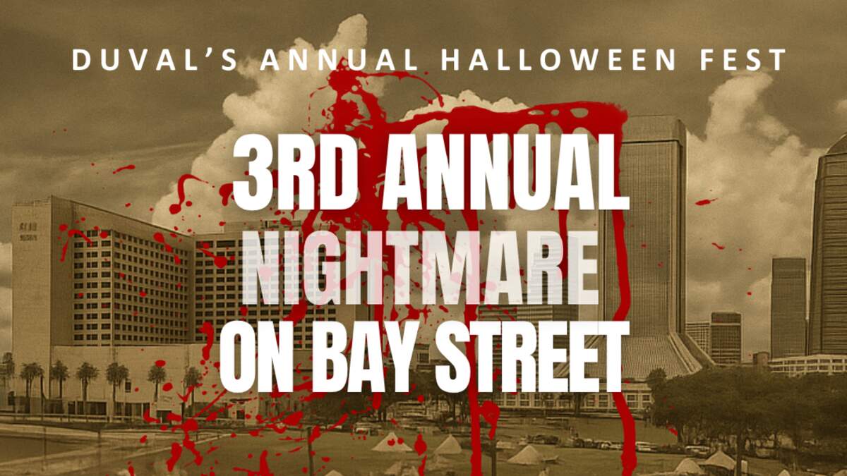 The 3rd Annual Nightmare on Bay Street Halloween Festival: Peace, Love & Nightmares... Brought to you by Jaxon Hospitality Group in partnership with Placemaking Jax is back on October 24th. Bay Street becomes a haunted Woodstock featuring 3 blocks of music, arts, scare zones and more!