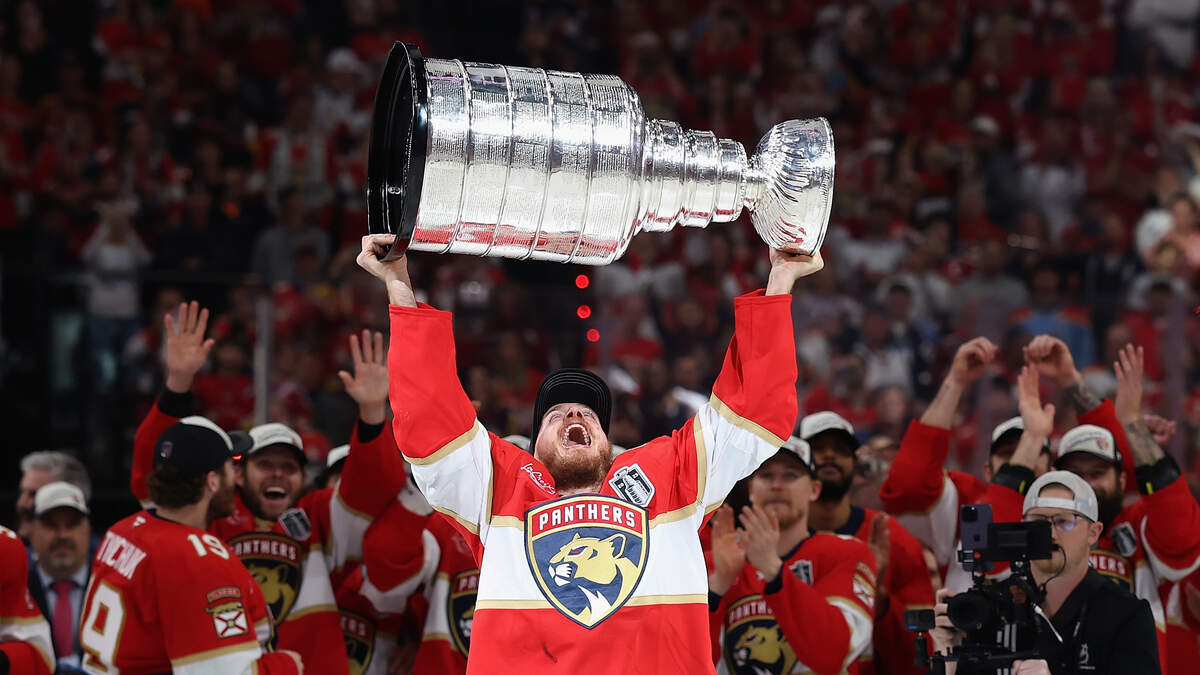 SUNRISE, FLORIDA - JUNE 17: Nate Schmidt #88 of the Florida Panthers celebrates with the Stanley Cup after defeating the Edmonton Oilers in Game Six of the 2025 Stanley Cup Final at Amerant Bank Arena on June 17, 2025 in Sunrise, Florida. (Photo by Christian Petersen/Getty Images)Photo: Christian Petersen / Getty Images Sport / Getty Images