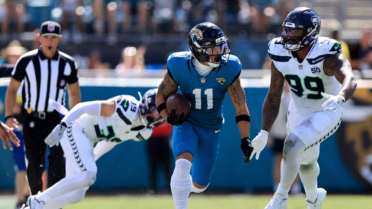 Parker Washington's 13 catches (on 25 targets) have netted him 155 yards (25.8 per game) and one TD this year.